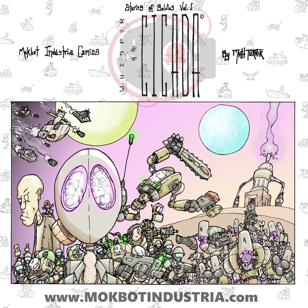 Welcome to Mokbot Industria Comics! I’m an independent comic book creator and publisher from Denver, Colorado. I create and publish my own comic books online and physically. Everything you see here is part of my world of angry robots and the humans who are fighting to stop them. My goal is to continue my story and get my books into the hands of as many people as possible. My first Volume “Whisper of the Cicada” is free to read on this site. The next volume “Song of the Fly” is for sale in my store. Check it out by following the link below!